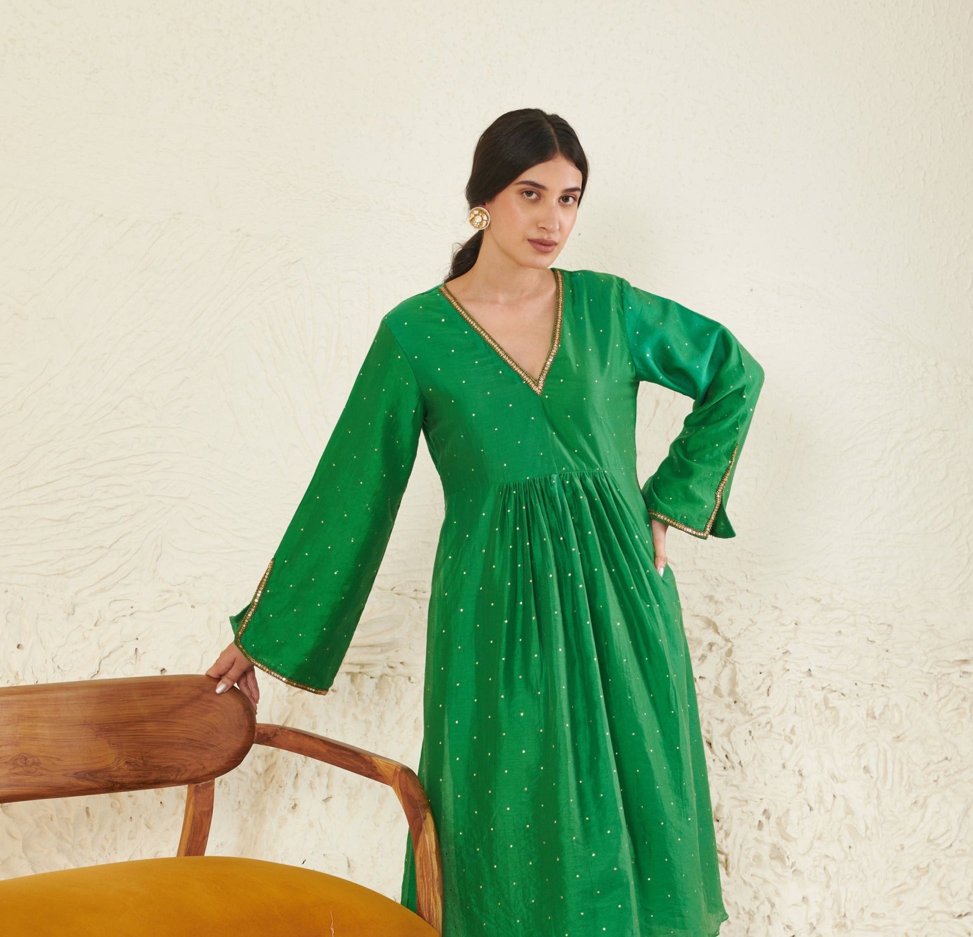 All over Mukesh work chanderi hand embroidered Kurta Set